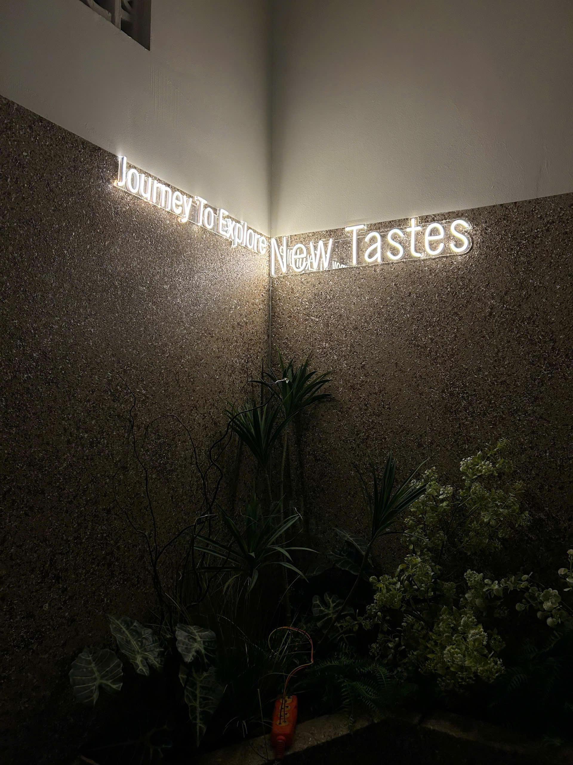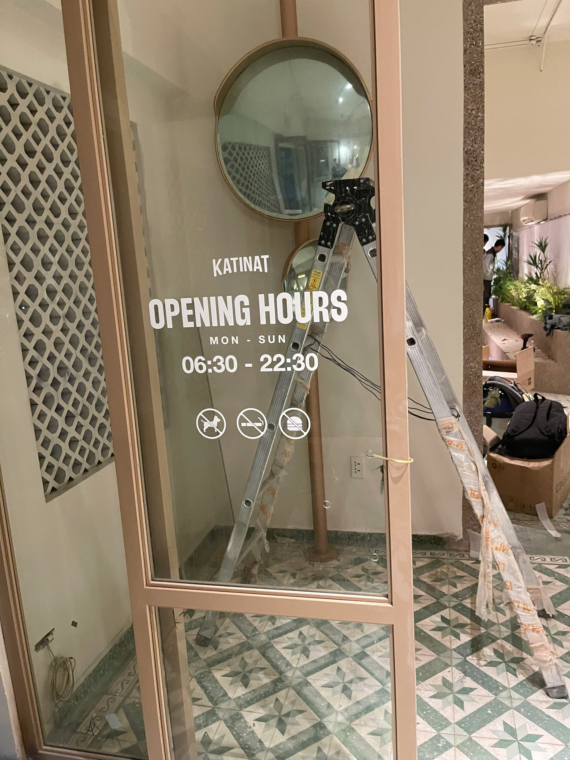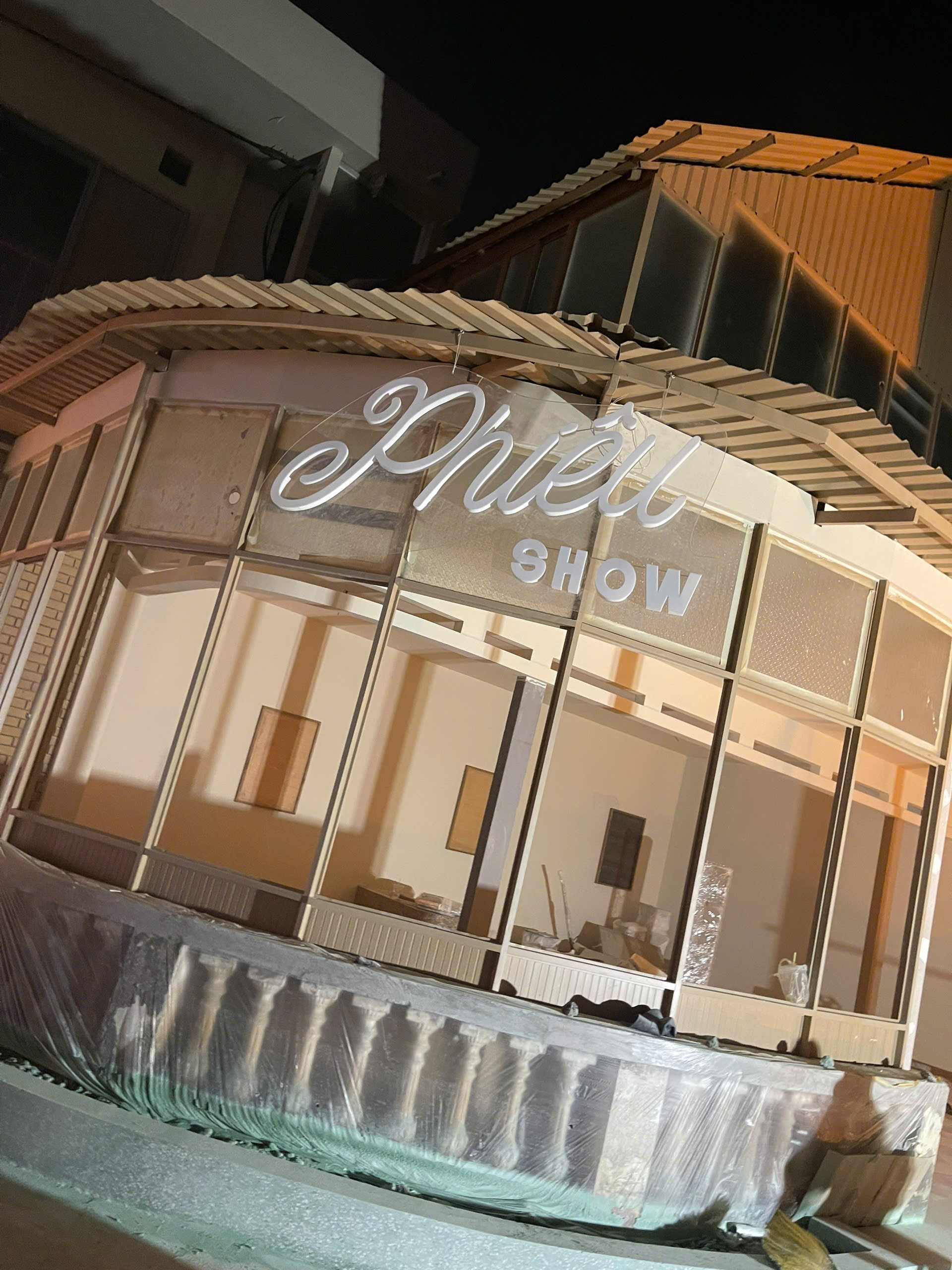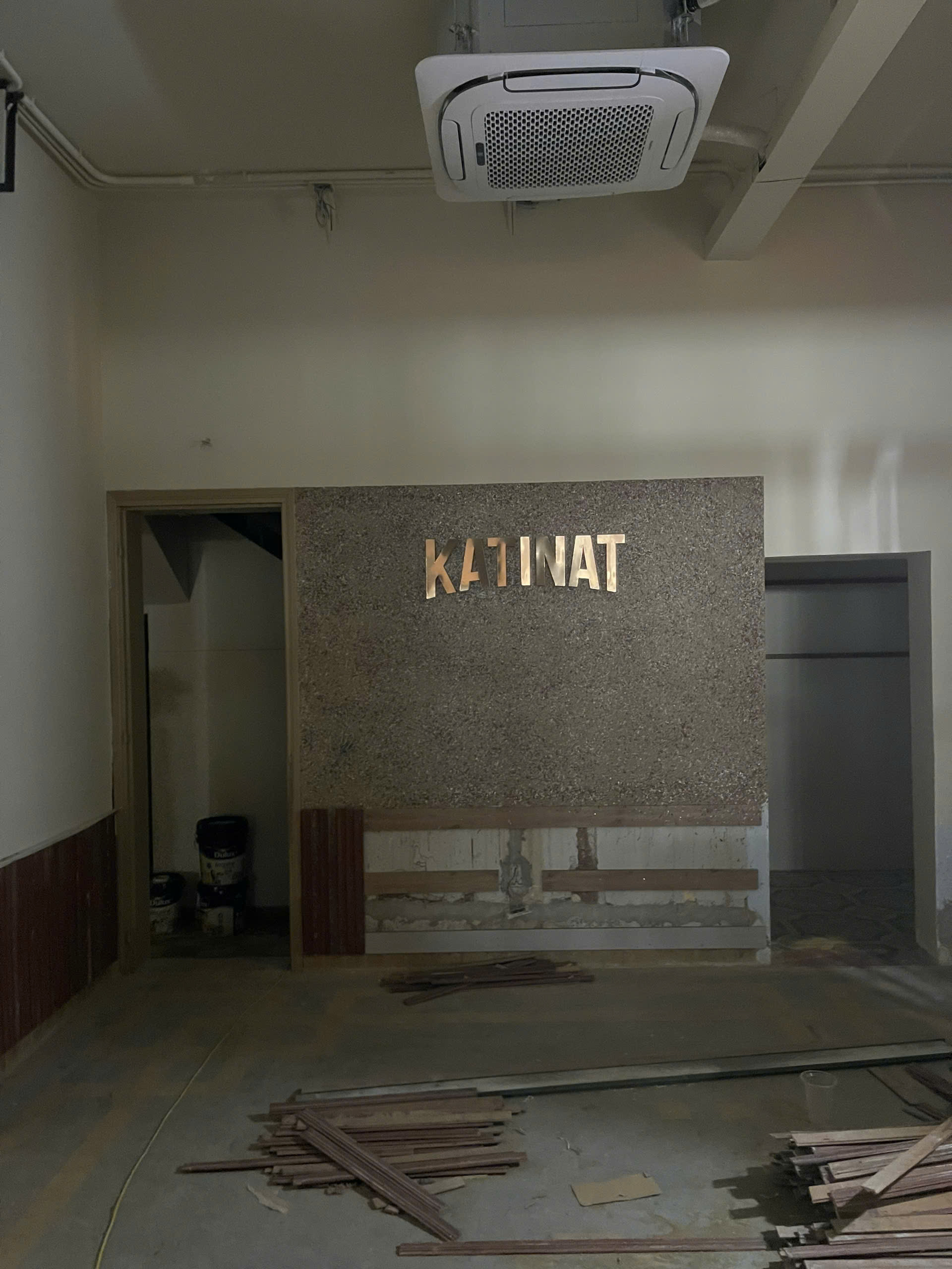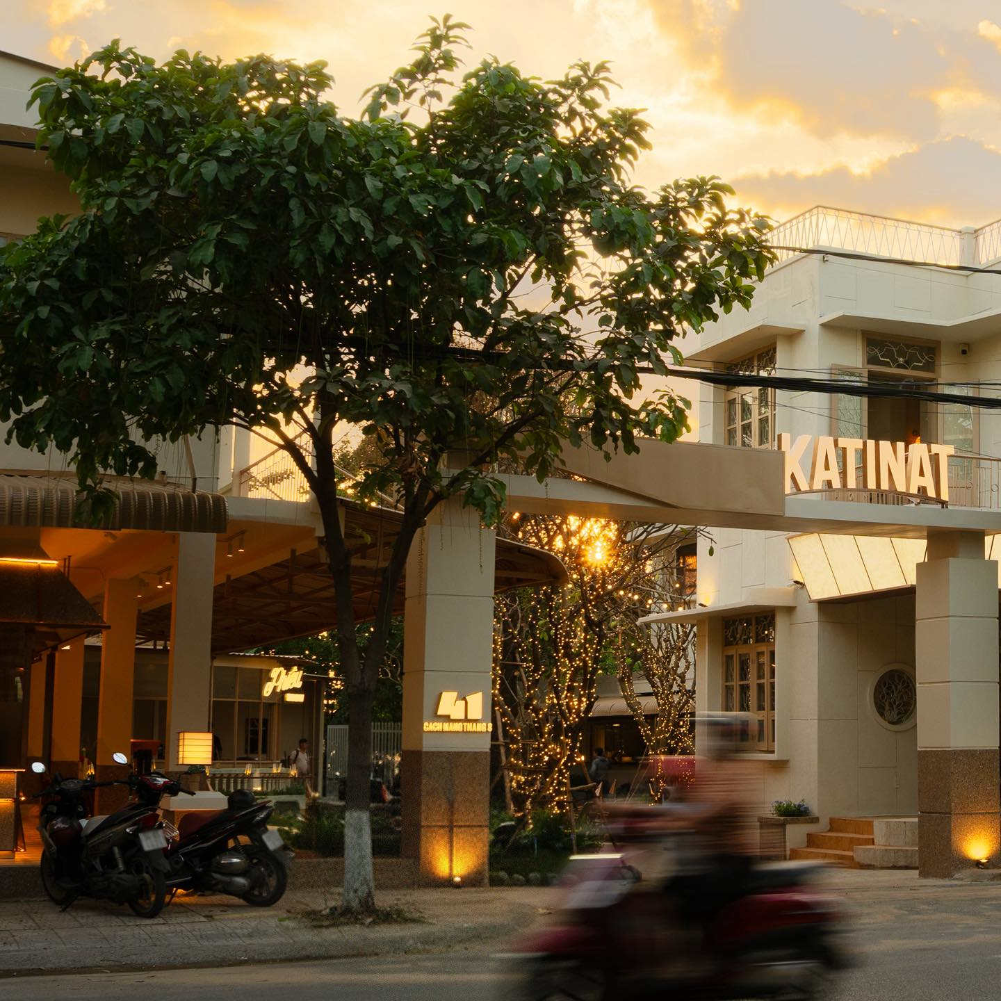 Hệ thống biển hiệu mặt tiền: Chế tác chữ "KATINAT" tinh xảo với hệ thống ánh sáng hắt chân hiện đại, đảm bảo sự nổi bật tuyệt đối cho thương hiệu vào ban đêm.